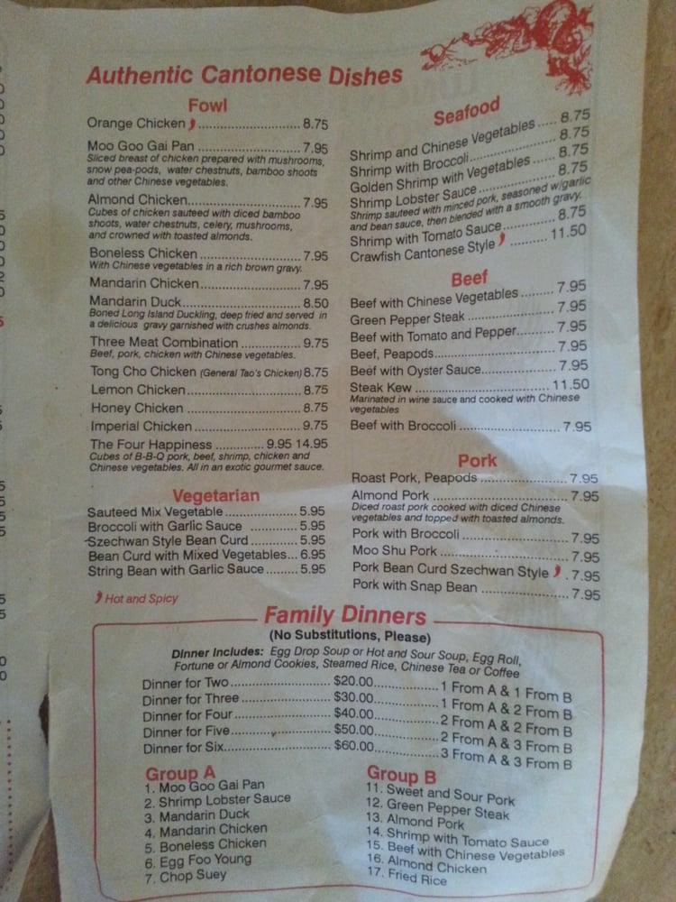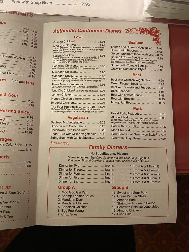 - For main courses, enjoy Sweet and Sour Pork or Mandarin Chicken, both bursting with authentic taste.